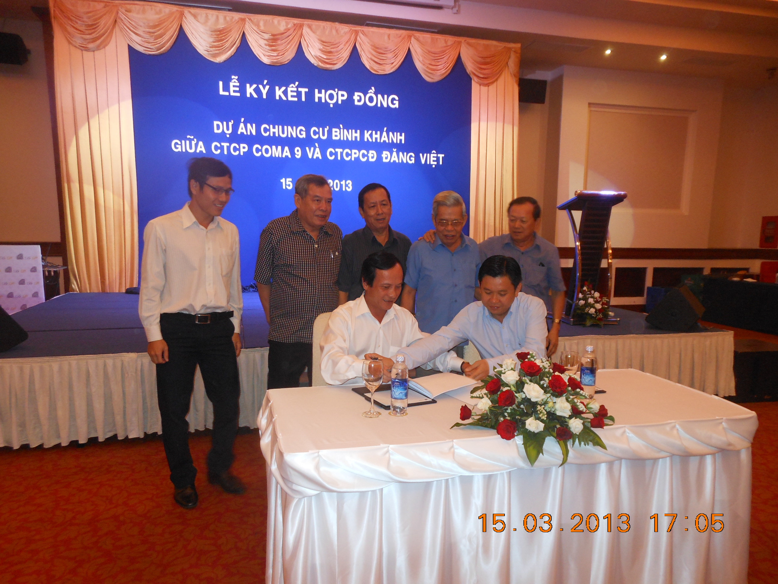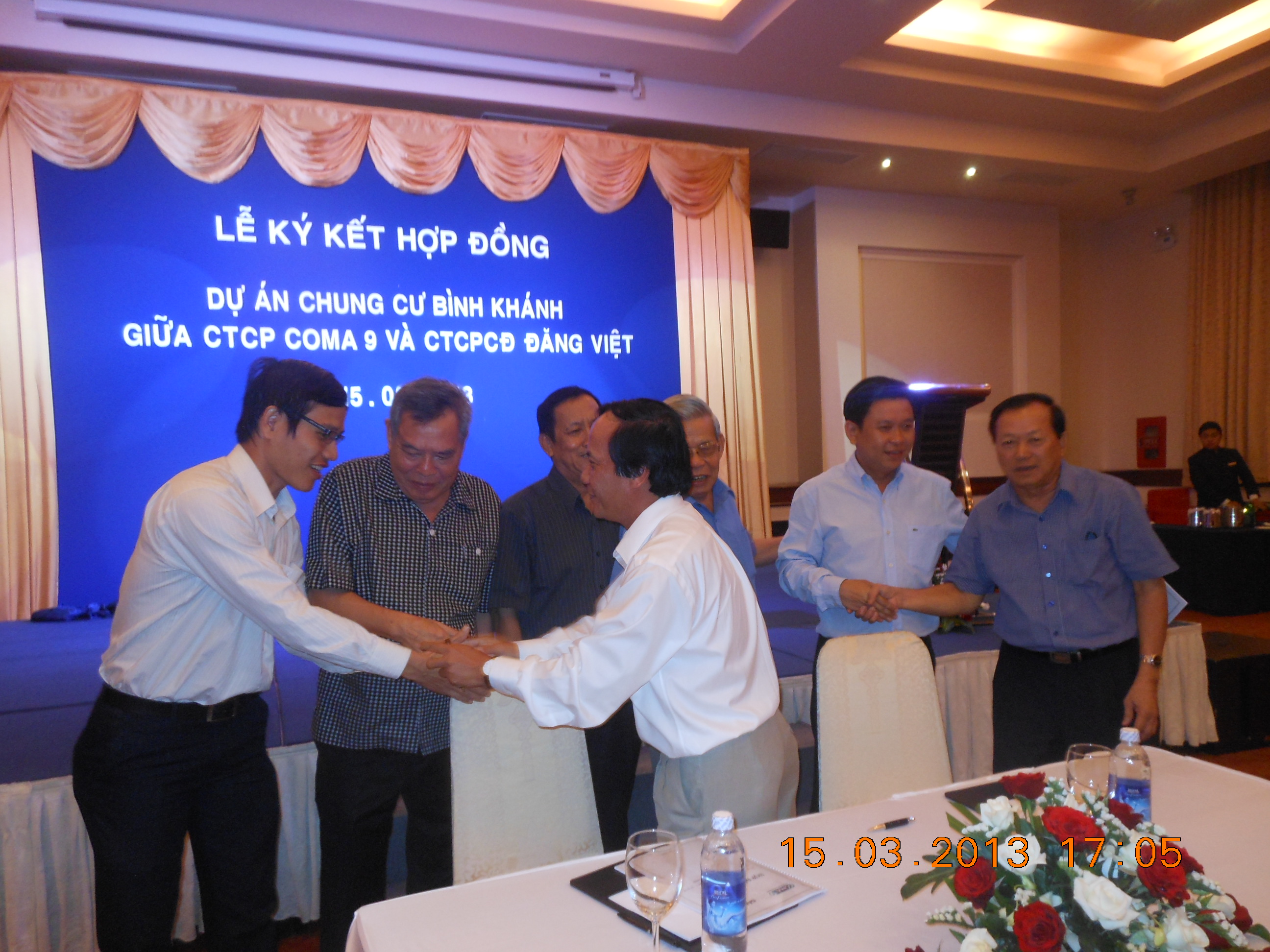 Ngày 15/3/2013, đã diễn ra LỄ KÍ KẾT HỢP ĐỒNG DỰ ÁN CHUNG CƯ BÌNH KHÁNH giữa Công ty Cổ phần COMA 9 và Công ty Cổ phần Cơ điện Đăng Việt.